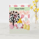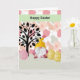 Easter Card with a cute Gnome in a yellow hat, with a mixed floral background, a tree and Easter eggs. Thanks to Creative Fabrica for some of the elements in the design. The words on the inside can be changed.