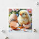A fluffy yellow chick hatched from an egg surrounded by vivid spring flowers and festive Easter decorations. This charming scene celebrates the joy and renewal of the Easter season.
