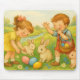 Mousepad with Easter illustration of happy children and bunny rabbits.