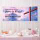 EASTER CHURCH SERVICES Jesus Is Risen CUSTOMIZABLE Banner to advertise your Easter services. Stylish HORIZONTAL EASTER BANNER announcing EASTER SERVICES for your church or organisation. Opening text reads DEATH COULD NOT HOLD HIM - JESUS IS RISEN. All text is CUSTOMIZABLE, so you can edit the text to suit your requirements. At the bottom, there is placeholder text for services on Good Friday, Easter Saturday, Resurrection Sunday.