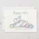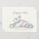 This design features a happy easter, pastel, watercolor, white bunny, with colourful, easter eggs, rabbit, and easter bunny, a cute springtime ,greeting card