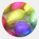 The brilliant colours of foil-wrapped chocolate Easter eggs decorate these cheerful stickers. A perfect finishing touch for any Easter card or package.