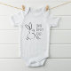 This cute bodysuit features "some bunny loves me" in condense modern typography with outline bunny graphic. Makes a perfect baby shower, newborn or Easter gift.