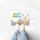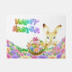 Easter doormat is shown with a festive Easter Bunny print with a Happy Easter text.