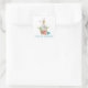 A Happy Easter sticker featuring a cute white pekin duck wearing bunny ears inside an Easter basket with coloured eggs and flowers.