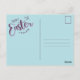 This Easter postcard was designed with an artistic feel. The eggs are made to look like paper quilling and the colors are pastel. The background is a lush meadow popping with Spring colors and blooms. The back of the postcard has a powder blue background with a "Happy Easter" graphic in script typography. There is still room to write a personal greeting. The back of the card also features address lines and stamp box in matching color.