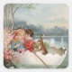 Easter Egg Bunny Boat Young Couple Landscape Square Sticker