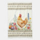 Hen with decorated Easter eggs, flowers & tan folk border pattern.