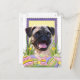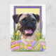 This Pug Dog is surrounded by Easter Egg decorated Cookies and looking forward to helping you send Easter Greetings and to welcome in Spring. This design is available in over 70+ Dog Breeds. If you don't see your favourite Dog Breed OR if you would like YOUR OWN DOG in this design, just contact me. There is also a version of this design that you can upload your own photo into.