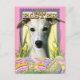 This Whippet Dog is surrounded by Easter Egg decorated Cookies and looking forward to helping you send Easter Greetings and to welcome in Spring. This design is available in over 70+ Dog Breeds. If you don't see your favourite Dog Breed OR if you would like YOUR OWN DOG in this design, just contact me. There is also a version of this design that you can upload your own photo into.