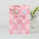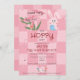 For your Easter Celebration party, choose this Easter Egg Hunt Brunch Cute Pink Watercolor Bunny Invitation template, with cute and trendy hand drawn doodles on a two-tone pink chequerboard background
