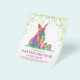 This colorful watercolor Easter invitation features a cute psychedelic rabbit surrounded by vibrant multicolored Easter eggs, making it perfect for an Easter brunch, Easter egg hunt, or spring party with family and friends. A cheerful way to share springtime joy and bring everyone together.