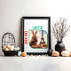 In the foreground, a mischievous black cat with glowing yellow eyes perches. its arched back conveying a sense of playful mischief. Surrounding the scene are swirling tendrils of fog, adding an extra touch of otherworldly enchantment.
