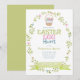 Easter Egg Hunt Invitation with pastel colours and pretty floral oval wreath and Easter egg basket.