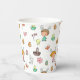 Cute paper cups with a pattern of Easter elements like kids with bunny ears, chicks, rabbits and easter eggs. Illustrated and designed by Patricia Alvarez.