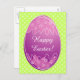 Easter egg postcards with white polka dots pattern. cheerful color combination, purple and green. Personalized message, Happy Easter. Cute design for kids egg hunt party invitation.