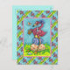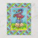 EASTER EGGS AND CUTE BABY PINK FLAMINGO WITH BUNNY HOLIDAY POSTCARD
