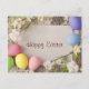 Easter Eggs and Note on Wooden Background Holiday Postcard
