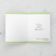 The interior is blank, so really it can be used on any occasion. The card is on sturdy, white paper and the image clear and the colors true.