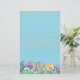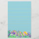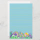 A pretty blue and yellow lined stationery for Easter featuring a patch of decorated eggs among the purple crocus flowers illustrated with watercolor. Festive stationery for holiday letters, pen pal letters, journalling and more!