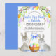 Easter Eggs, Bunnies, Spring Flowers Blue Brunch Invitation