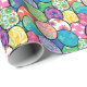 This paper is covered with Easter eggs, each one outlined in black and decorated with delicate patterns such as paisley, polka dots, flowers, and more. Colours include pink, purple, blue, green peach, yellow and white. Perfect for gift wrap and crafts including decoupage.