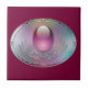 A pastel blue, lavender, and pink design with a translucent pink egg in a silver filigree setting, circled by a light silver oval frame set with four more smooth gems like colourful eggs.