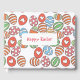 This wrapping paper has a colourful pattern of Easter eggs in pink, green, blue, purple and orange.