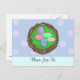 A soft blue and white polka dot background with a soft mint green border. A twig nest filled with green Easter straw and colorful Easter eggs. Customize message as desired.