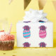 An illustration of three easter eggs with flowers and ribbon in stripe colours of pink, magenta and violet. This design is a gift idea for surprise gift lovers, easter egg hunter lovers and pastel colour lovers.