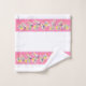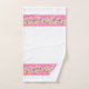 A White Bath Towel Set For Easter Decor With Pink Boarder And Colorful Floral Rabbits