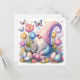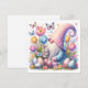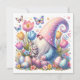 A vibrant Easter greeting card featuring a whimsical gnome in a polka‑dot outfit sitting among bright tulips and decorated Easter eggs. A sweet gray bunny with a pink ribbon nestles beside him, while colorful butterflies flutter overhead. The lively colors and playful fantasy style make this card a delightful choice for celebrating Easter and the magic of spring.