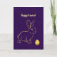 Elegant gold bunny outline with gold egg on a purple & gold background.