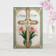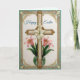 This card design features two of the major symbols of Easter: a cross and lilies. The inside of the card is blank, so you may add your own personalised Easter message to the recipient.