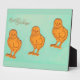 A vintage / antique Happy Easter postcard with three fuzzy yellow felt chicks all in a row. Background in blue. Happy Easter!