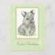 An Easter Greetings postcard featuring a sweet baby bunny drawn in pen and ink with grey coloured pencil sitting on a little patch of grass and accented with white butterflies.