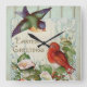 Easter Greetings Vintage Retro Songbirds Square Wall Clock