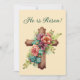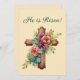 Celebrate the joy of Easter with this beautifully designed card featuring a wooden cross adorned with delicate watercolor flowers in soft pink, purple, and blue hues. The front of the card showcases the uplifting phrase, *"He is Risen,"* capturing the essence of the season's hope and renewal. On the reverse, you'll find an editable, uplifting sentiment, allowing you to add a personal touch for your loved ones. Perfect for sharing heartfelt messages of faith, love, and encouragement this Easter. Whether you're sending it to family, friends, or members of your congregation, this card is a meaningful way to honour the spirit of Easter. Edit text from the product page or to change font style or colour, use the design tool.