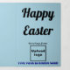 Trifold holiday card that you can customise to put your business name, other information of your business and with Easter greeting. Customise it and use it to greet your customers or clients this Easter holiday. You can also use it as marketing material to advertise your business or to promote your brand name. Customisable trifold holiday card that you can use to build brand name awareness. Design colours are black and dark blue texts on light blue background. To customise this card, upload your business logo and photo of your main product or service, type your business name, address, phone number, e-mail, website or social media page and short description of your business and products or services. Short description that will attract customers to buy your products or clients to like your services. After uploading logo and typing texts, please check the appearance outside and inside. If the appearance is pleasing to you, you can place your order now. If you need to resize and move the logo and texts to fit on this card, please change in the design tool. You can also make other changes in the design tool according to the appearance of this card that you prefer such as changing the background colour, font colour and font style. Happy Easter! Wishing you more sales this Easter holiday.