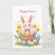 Happy Easter with this cute animals like easter bunny or baby chick. Join the easter egg hunt in spring with vibrant colours and joy, candy and a floral vintage fantasy. Cute rabbit with flowers. Happy Easter greetings card with cute animals.