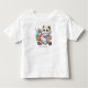 A cute personalised toddler t-shirt with a cute Easter kitten on a scooter loaded with Easter eggs,