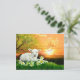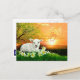 A white lamb is nestled among the lilies as a golden sun rises behind him on Easter morning. Send friends and family Happy Easter greetings with this lovely postcard.