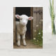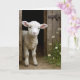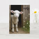 A young lamb stands at the entrance of a rustic wooden barn, exuding innocence and curiosity, while Queen Anne's Lace and daisies add a charming touch to the scene.