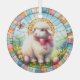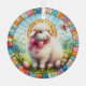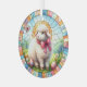 A beautiful stained glass Easter ornament of a cute lamb amongst the pretty colours.