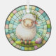 A beautiful stained glass Easter ornament of a cute lamb amongst the pretty colours.