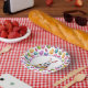 This cute paper bowl is shown with a festive Easter eggs and bunny print.