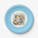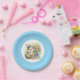 This cute paper plate is shown with a festive Easter eggs and bunny print.