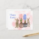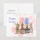 Easter Pink Blue Rabbits Floral Basket Holiday Postcard