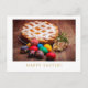 Easter postcard with Italian pastiera cheese pie and coloured eggs.