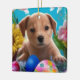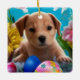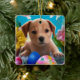 Easter Puppy Flowers and Eggs Holiday Ceramic Ornament